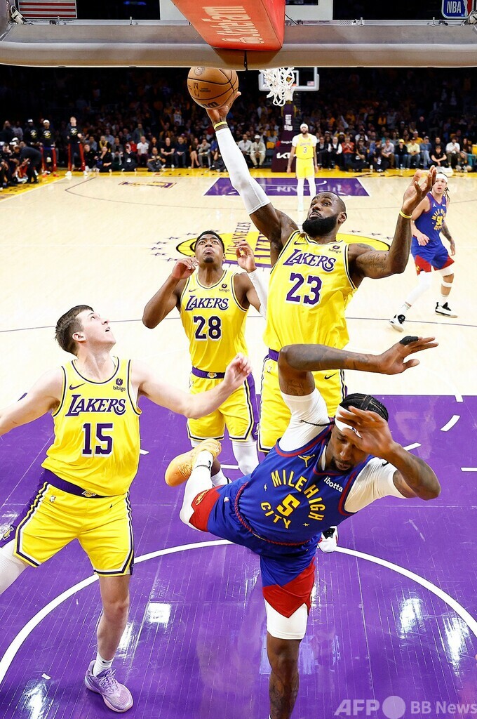 【4月26日 AFP】23-24NBAは25日、各地でプレーオフ1回戦(7回戦制)が行われ、王者デンバー・ナゲッツ(Denver Nuggets)は112-105でロサンゼルス・レイカーズ(Los Angeles Lakers)から逆転勝利を収め、勝ち上がりに王手をかけた。