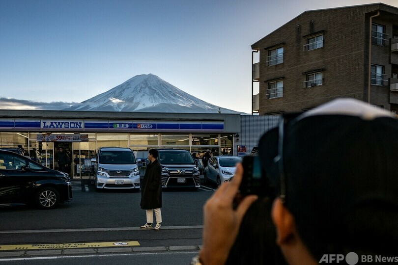 But this viewpoint is particularly popular because the majestic volcano appears behind a Lawson convenience store, which are ubiquitous in Japan.