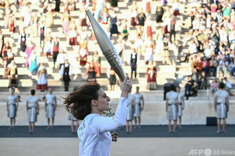 パリ五輪聖火、ギリシャから開催地フランスへ引き継ぎ