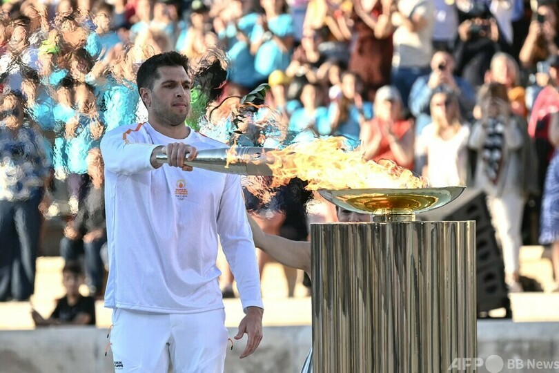 パリ五輪聖火、ギリシャから開催地フランスへ引き継ぎ