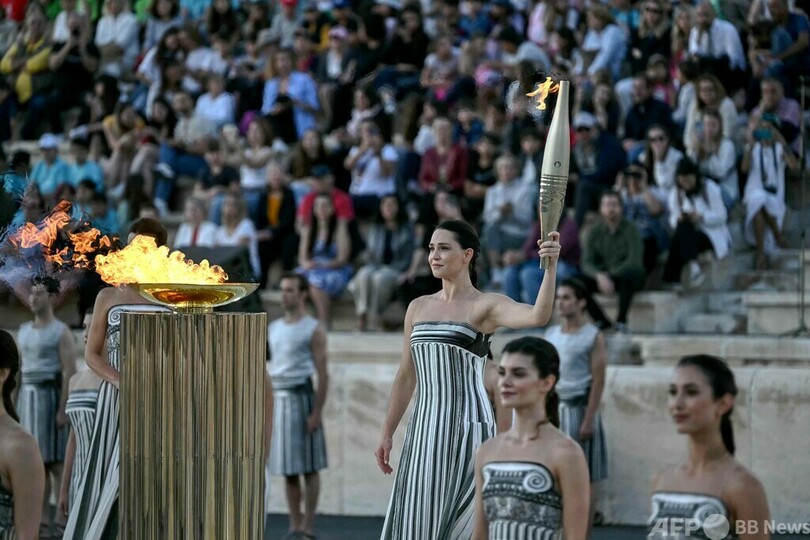 パリ五輪聖火、ギリシャから開催地フランスへ引き継ぎ