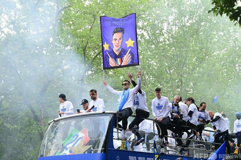 【4月29日 AFP】23-24イタリア・セリエAは28日、第34節の試合が行われ、前節に優勝を決めたインテル(Inter Milan)は2-0でトリノ(Torino FC)に勝利し、地元ミラノ(Milan)市内で盛大な優勝パレードを行った。