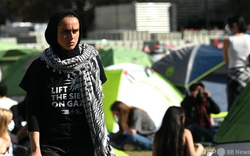 【4月30日 AFP】パレスチナ自治区ガザ地区(Gaza Strip)への連帯を示す抗議行動が全米各地の大学に広がる中、中心的存在となっているニューヨークのコロンビア大学(Columbia University)は29日、解散を命じる最後通告にデモ隊が従わなかったとして学生に対する停学処分を開始した。午後2時までに泊まり込み用のテントを撤去しなければ、懲戒処分を下すとしていた。