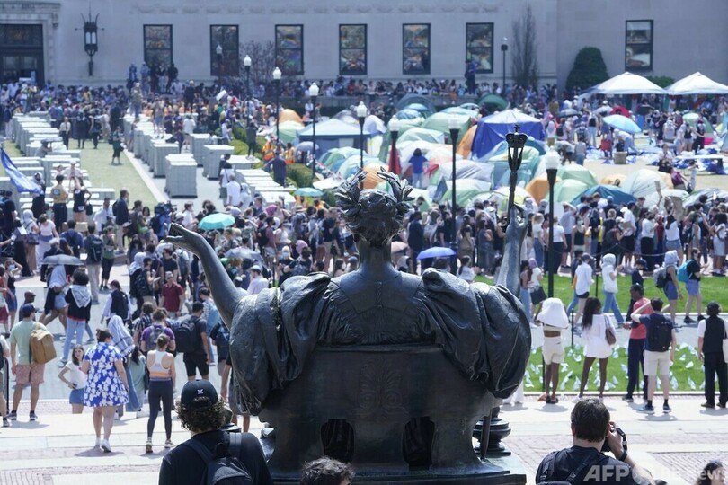 【4月30日 AFP】パレスチナ自治区ガザ地区(Gaza Strip)への連帯を示す抗議行動が全米各地の大学に広がる中、中心的存在となっているニューヨークのコロンビア大学(Columbia University)は29日、解散を命じる最後通告にデモ隊が従わなかったとして学生に対する停学処分を開始した。午後2時までに泊まり込み用のテントを撤去しなければ、懲戒処分を下すとしていた。
