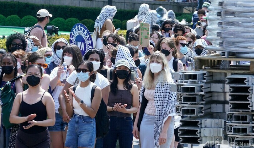 【4月30日 AFP】パレスチナ自治区ガザ地区(Gaza Strip)への連帯を示す抗議行動が全米各地の大学に広がる中、中心的存在となっているニューヨークのコロンビア大学(Columbia University)は29日、解散を命じる最後通告にデモ隊が従わなかったとして学生に対する停学処分を開始した。午後2時までに泊まり込み用のテントを撤去しなければ、懲戒処分を下すとしていた。