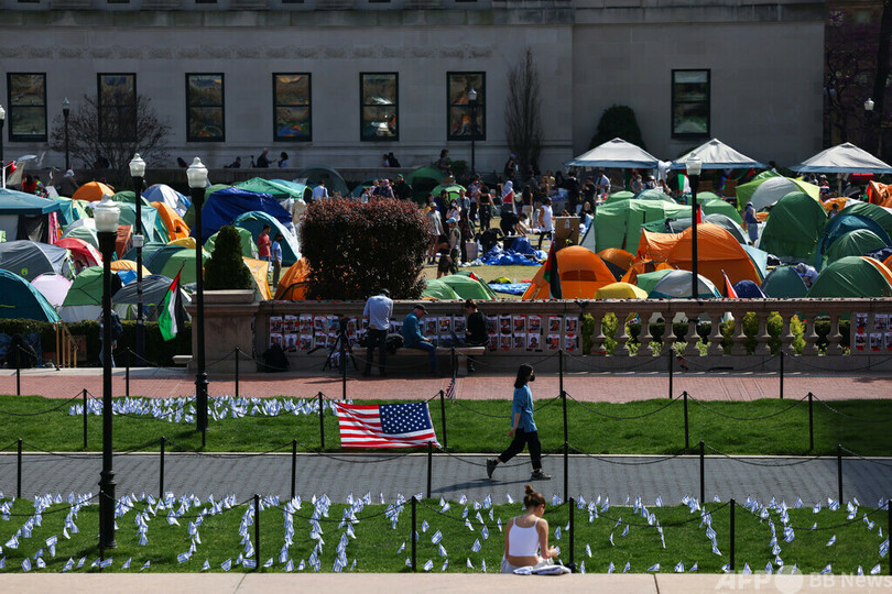 【4月30日 AFP】パレスチナ自治区ガザ地区(Gaza Strip)への連帯を示す抗議行動が全米各地の大学に広がる中、中心的存在となっているニューヨークのコロンビア大学(Columbia University)は29日、解散を命じる最後通告にデモ隊が従わなかったとして学生に対する停学処分を開始した。午後2時までに泊まり込み用のテントを撤去しなければ、懲戒処分を下すとしていた。