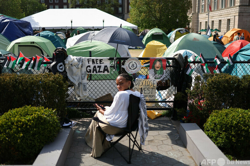 【4月30日 AFP】パレスチナ自治区ガザ地区(Gaza Strip)への連帯を示す抗議行動が全米各地の大学に広がる中、中心的存在となっているニューヨークのコロンビア大学(Columbia University)は29日、解散を命じる最後通告にデモ隊が従わなかったとして学生に対する停学処分を開始した。午後2時までに泊まり込み用のテントを撤去しなければ、懲戒処分を下すとしていた。