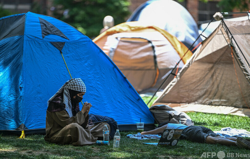 【4月30日 AFP】パレスチナ自治区ガザ地区(Gaza Strip)への連帯を示す抗議行動が全米各地の大学に広がる中、中心的存在となっているニューヨークのコロンビア大学(Columbia University)は29日、解散を命じる最後通告にデモ隊が従わなかったとして学生に対する停学処分を開始した。午後2時までに泊まり込み用のテントを撤去しなければ、懲戒処分を下すとしていた。
