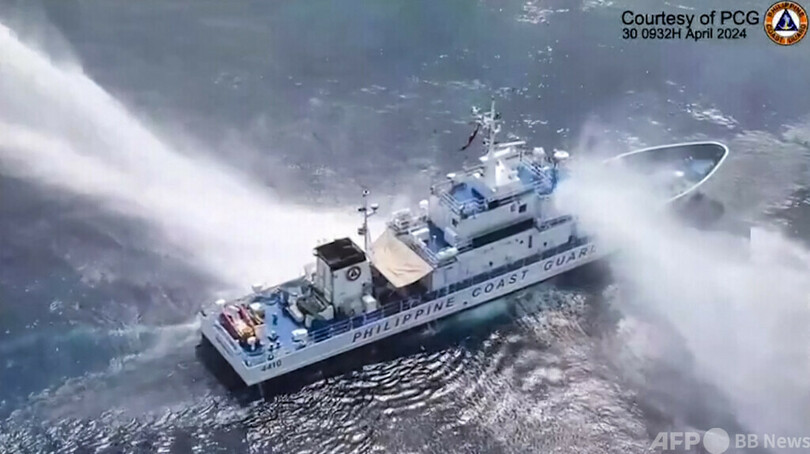 沿岸警備隊は、「フィリピン船は中国海警局の船4隻と海上民兵の船6隻から危険行為と妨害を受けた」と説明。沿岸警備隊の船舶が両側から放水銃を浴び、手すりと天蓋(てんがい)が破損したとしている。