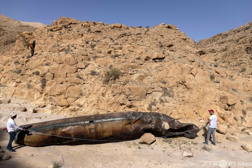 【今日の1枚】弾道ミサイルを検分、砂地にクジラのような物体 イスラエル