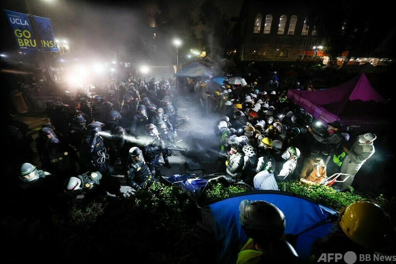 イスラエルのガザ侵攻に抗議するデモは、全米各地の大学に広がっている。カリフォルニア大学ロサンゼルス校(UCLA)ではデモ隊を警官隊が対峙(たいじ)。解散命令に従わなかった200人以上が逮捕された。