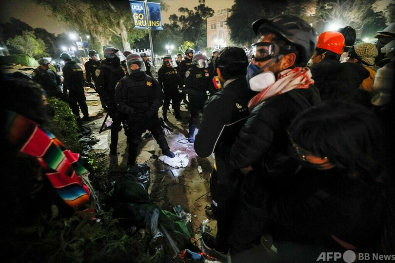 イスラエルのガザ侵攻に抗議するデモは、全米各地の大学に広がっている。カリフォルニア大学ロサンゼルス校(UCLA)ではデモ隊を警官隊が対峙(たいじ)。解散命令に従わなかった200人以上が逮捕された。