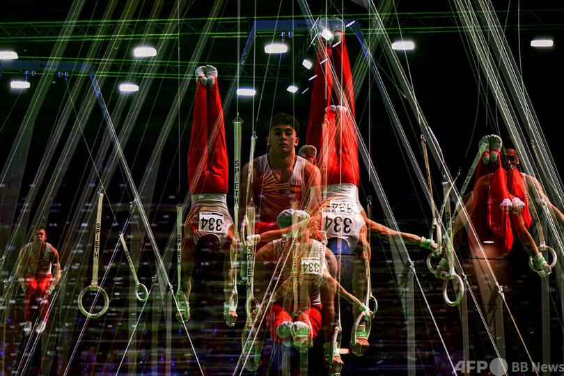 【5月11日 AFP】イタリア北東部、アドリア(Adriatic)海沿岸のリミニ(Rimini)で開催された体操競技の欧州選手権大会(2024 European Championships in Artistic Gymnastics)で男子個人種目の鉄棒に臨む選手を捉えた多重露光写真。(c)AFP