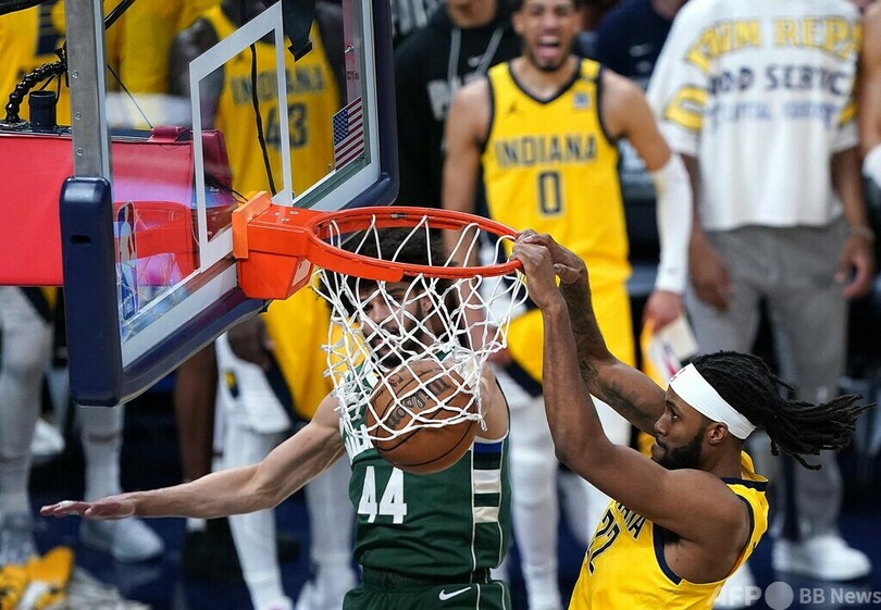対するバックスは、オールスター選出8回のダミアン・リラード(Damian Lillard)が3試合ぶりに出場し、チーム最多の28得点を記録。しかし、シーズンMVP2度のヤニス・アデトクンポ(Giannis Antetokounmpo)はレギュラーシーズン終盤に痛めたふくらはぎのけがでこの日も不在で、チームの反撃はかなわなかった。