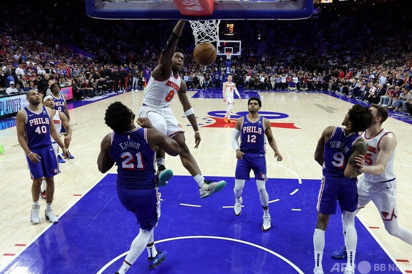シクサーズはその数秒後、ジョエル・エンビード(Joel Embiid)がドライブからレイアップを沈めて1点差に詰め寄ったが、直後に痛恨のファウルアウトに。その隙にニックスは、ダンテ・ディヴィンチェンゾ(Donte DiVincenzo)とブランソンがフリースローを決めて突き放した。