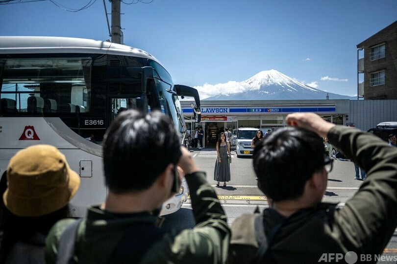 Fujikawaguchiko town began building panels of mesh netting at a spot where unending flows of mostly foreign tourists visit daily to take photos of the majestic mountain sitting behind a Lawson convenience store.