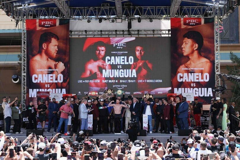 【5月4日 AFP】ボクシング世界4団体スーパーミドル級タイトルマッチの前日計量が3日、米ネバダ州ラスベガス(Las Vegas)で行われ、統一王者のカネロ(Canelo)ことサウル・アルバレス(Saul Alvarez、メキシコ)と、無敗の挑戦者ハイメ・ムンギア(Jaime Munguia、メキシコ)がともにクリアした。