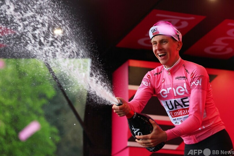 1998年のマルコ・パンターニ(Marco Pantani)以来となるジロとツール・ド・フランス(Tour de France)の2冠を狙うポガチャルは、終盤の登り残り4キロほどのところでアタックを仕掛け、自信たっぷりの様子で後続を引き離すと、そのまま逃げ切った。