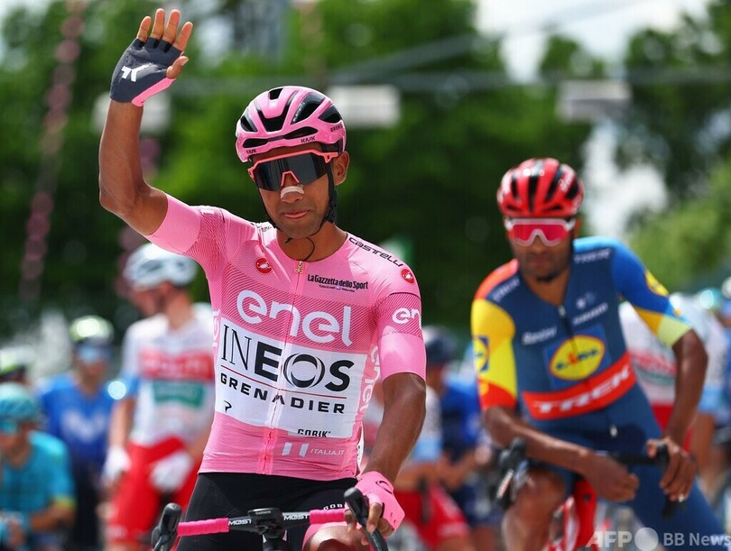 今季レースを戦った12日で8勝を挙げているポガチャルは、2位に入ったボーラ・ハンスグローエ(Bora Hansgrohe)のダニエル・マルティネス(Daniel Martinez、コロンビア)、3位に入ったイネオス・グレナディアーズ(Ineos Grenadiers)のゲラント・トーマス(Geraint Thomas、英国)に27秒差をつけるなど好調ぶりを見せつけており、イネオスのジョナタン・ナルバエス(Jhonatan Narvaez、エクアドル)から総合トップのマリアローザ(ピンクジャージー)を奪った。(c)AFP