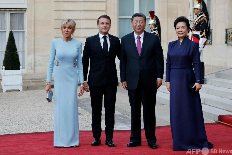 習氏の欧州訪問は2019年以来。フランスには2日間の日程で国賓待遇で訪れ、その後セルビアとハンガリーも訪問する。ただ、習氏が路線を変える可能性は低いとみられ、専門家は、貿易やウクライナ侵攻に関して目覚ましい成果は期待できないとしている。(c)AFP/Francesco Fontemaggi, Ludovic Ehret and Stuart Williams