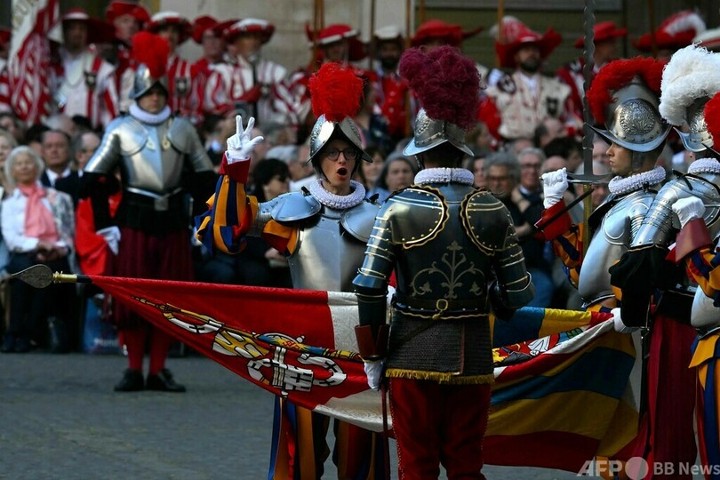 【5月7日 AFP】バチカン市国で6日、ローマ・カトリック教会のフランシスコ教皇(Pope Francis)の警護にあたるスイス衛兵(Swiss Guards)の新兵による就任宣誓式が行われた。