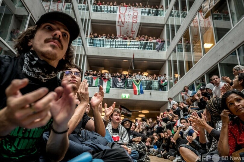 オランダでは、6日夜にアムステルダム大学(University of Amsterdam)で警察が抗議行動の参加者を警棒で制圧したり、敷地内に設営されたテントを壊したりしている様子が映っている動画が拡散。ただ、7日夜には数百人がデモを再開した。警察は6日以来、169人を逮捕したとしている。