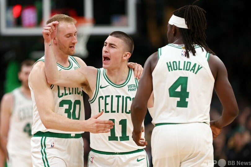 フィールドゴール(FG)19本中7本の成功にとどまりながらもジェイソン・テイタム(Jayson Tatum)が18得点を挙げたセルティックスは、試合を終始支配し、後半に入ってからは2桁リードを保った。