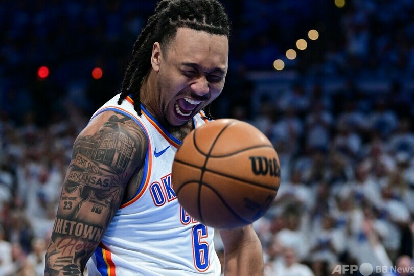 サンダーではシェイ・ギルジアス・アレクサンダー(Shai Gilgeous-Alexander)がチーム最多29点、9リバウンド、9アシストを記録すると、チェット・ホルムグレン(Chet Holmgren)が19点、ジェイレン・ウィリアムズ(Jalen Williams)が18点を入れた。(c)AFP