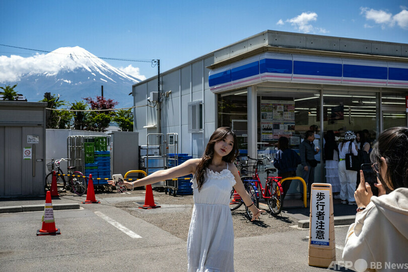 河口湖町には、コンビニエンスストアのローソン(Lawson)越しに富士山を撮影できるスポットがあり、主に外国人観光客の間で人気が広まっていた。しかし、観光客のマナーに問題があるとして近隣住民から苦情が寄せられ、町は「目隠し」の設置を決めた。