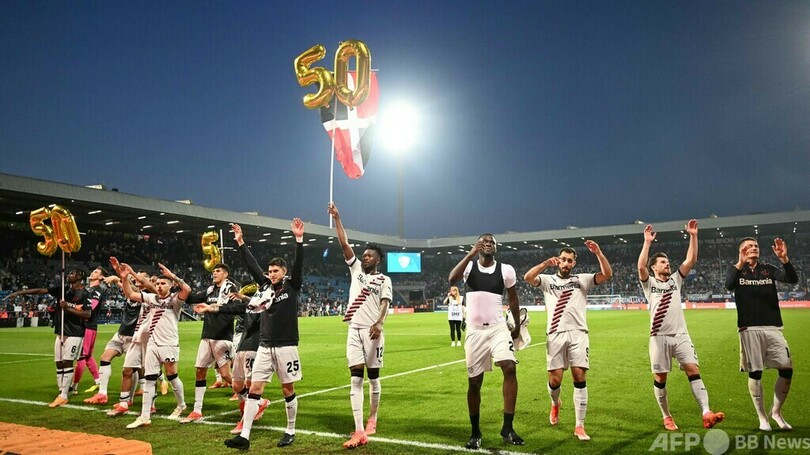 【5月13日 AFP】23-24ドイツ・ブンデスリーガ1部は12日、第33節の試合が行われ、王者バイヤー・レバークーゼン(Bayer Leverkusen)は10人のVfLボーフム(VfL Bochum)に5-0で大勝し、今季公式戦無敗記録を50に伸ばした。
