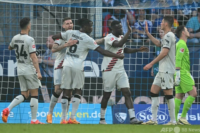【5月13日 AFP】23-24ドイツ・ブンデスリーガ1部は12日、第33節の試合が行われ、王者バイヤー・レバークーゼン(Bayer Leverkusen)は10人のVfLボーフム(VfL Bochum)に5-0で大勝し、今季公式戦無敗記録を50に伸ばした。