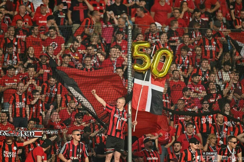 【5月13日 AFP】23-24ドイツ・ブンデスリーガ1部は12日、第33節の試合が行われ、王者バイヤー・レバークーゼン(Bayer Leverkusen)は10人のVfLボーフム(VfL Bochum)に5-0で大勝し、今季公式戦無敗記録を50に伸ばした。