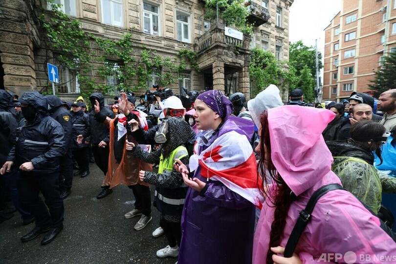 「外国の代理人」法案、最終採決へ 議会前で抗議デモ ジョージア