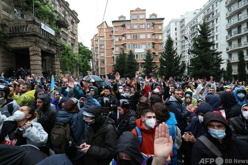 「外国の代理人」法案、最終採決へ 議会前で抗議デモ ジョージア