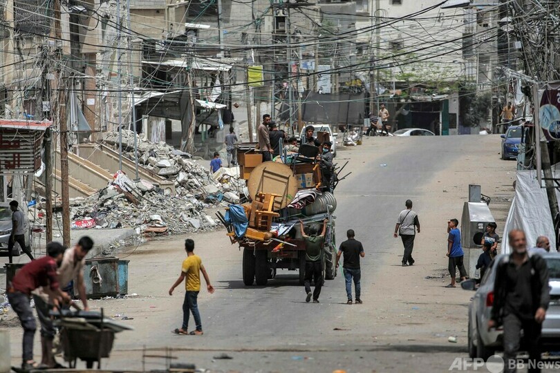 AFPカメラマンは、家財道具をトラックに積んでラファを離れる何十世帯もの家族を目撃した。多くが目指しているのはガザ地区南部の中心都市ハンユニス(Khan Yunis)だ。
