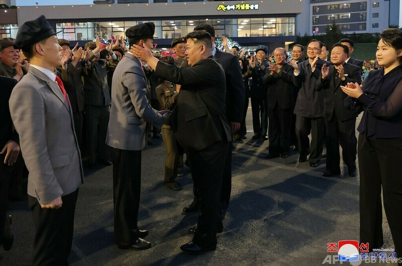 金氏は14日、首都平壌の市街地に新設された「前衛通り」の竣工式にも娘のジュエ(Kim Ju Ae)氏と共に出席した。(c)AFP