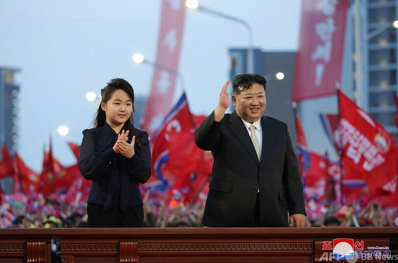 金氏は14日、首都平壌の市街地に新設された「前衛通り」の竣工式にも娘のジュエ(Kim Ju Ae)氏と共に出席した。(c)AFP