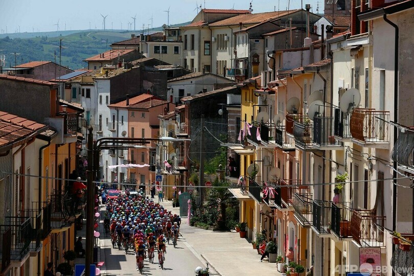 総合争いではUTE(UAE TEAM EMIRATES)のタデイ・ポガチャル(Tadej Pogacar、スロベニア)が総合首位のマリアローザ(ピンクジャージー)を維持。同2位につけるボーラ・ハンスグローエ(Bora Hansgrohe)のダニエル・マルティネス(Daniel Martinez、コロンビア)との2分40秒差、同3位につけるイネオスのゲラント・トーマス(Geraint Thomas、英国)との2分56秒差を守った。(c)AFP