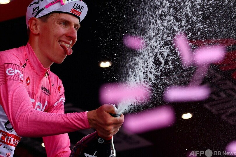 総合争いではUTE(UAE TEAM EMIRATES)のタデイ・ポガチャル(Tadej Pogacar、スロベニア)が総合首位のマリアローザ(ピンクジャージー)を維持。同2位につけるボーラ・ハンスグローエ(Bora Hansgrohe)のダニエル・マルティネス(Daniel Martinez、コロンビア)との2分40秒差、同3位につけるイネオスのゲラント・トーマス(Geraint Thomas、英国)との2分56秒差を守った。(c)AFP