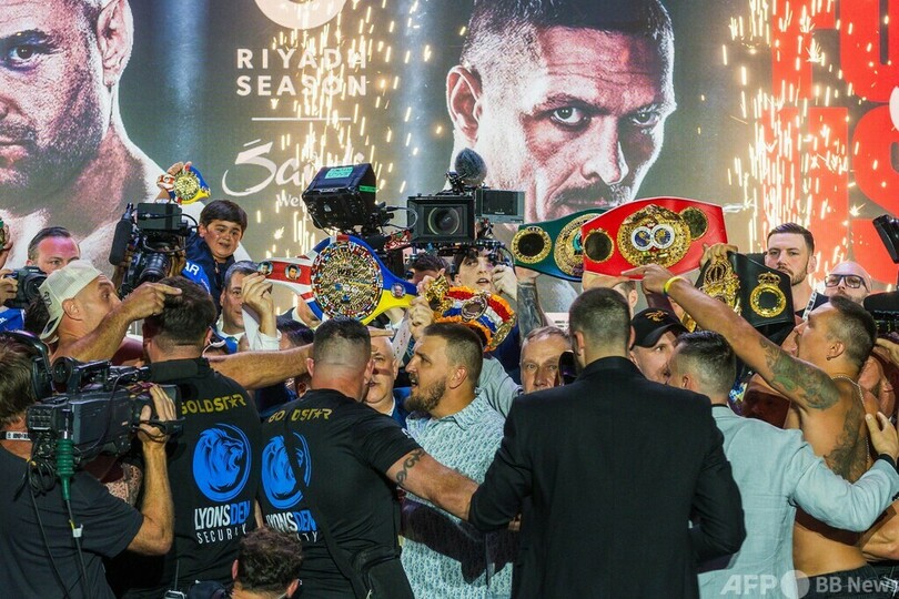 【5月18日 AFP】ボクシング、世界ヘビー級4団体王座統一戦の前日計量が17日に行われ、WBC王者タイソン・フューリー(Tyson Fury、英国)が、WBAスーパー、IBF、WBO王者オレクサンドル・ウシク(Oleksandr Usyk、ウクライナ)を突き飛ばして悪態をつくなどし、会場は一触即発の雰囲気となった。