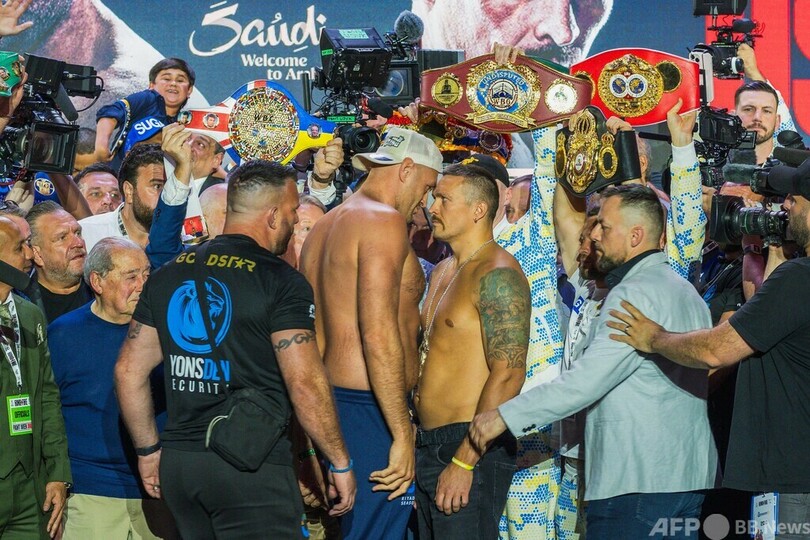 【5月18日 AFP】ボクシング、世界ヘビー級4団体王座統一戦の前日計量が17日に行われ、WBC王者タイソン・フューリー(Tyson Fury、英国)が、WBAスーパー、IBF、WBO王者オレクサンドル・ウシク(Oleksandr Usyk、ウクライナ)を突き飛ばして悪態をつくなどし、会場は一触即発の雰囲気となった。