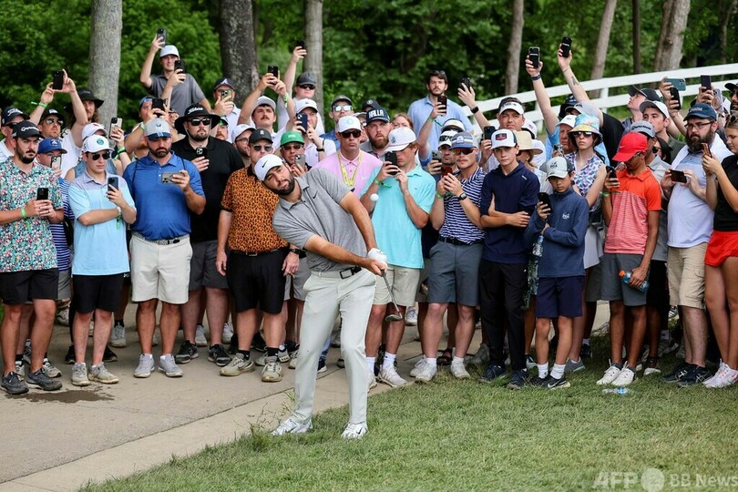 一方、2日目に警察に一時身柄を拘束された世界1位のスコッティ・シェフラー(Scottie Scheffler、米国)は優勝争いから後退。今季初のオーバーパーとなる「73」でスコアを2ストローク落とし、8打差24位タイに順位を落とした。(c)AFP/Jim SLATER