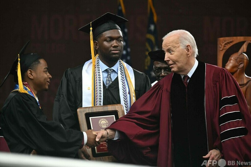 卒業式が行われたモアハウスカレッジ(Morehouse College)は、ジョージア州アトランタ(Atlanta)でアフリカ系米国人のための高等教育として設立された「歴史的黒人大学(Historically black colleges and universities)」と呼ばれる大学の一つ。バイデン氏が式辞を述べる間、一部の卒業生は無言の抗議を行い、パレスチナ旗を掲げる学生もいた。