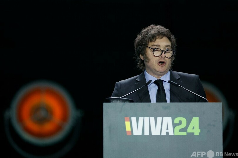 ミレイ氏は、スペインの極右政党ボックス(VOX)が主催した会合「ビバ24(Viva 24)」に出席。イタリアのジョルジャ・メローニ(Giorgia Meloni)首相、フランスのマリーヌ・ルペン(Marine Le Pen)氏らの姿もあった。