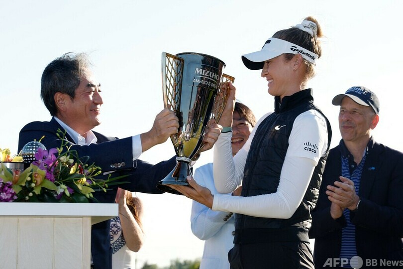 【5月20日 AFP】女子ゴルフ米国ツアー、みずほアメリカズ・オープン(2024 Mizuho Americas Open)は19日、米ニュージャージー州ジャージーシティー(Jersey City)のリバティ・ナショナルGC(Liberty National Golf Club、パー72)で最終日が行われ、世界ランキング1位のネリー・コルダ(Nelly Korda、米国)が1アンダー「71」で回り、通算14アンダーで今季6勝目を挙げた。