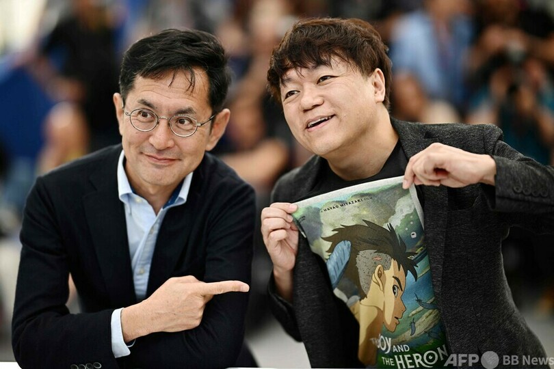 吾朗監督は、オスカー像を米国から大切に持ち帰る際にジブリの代表者はホテルのタオルにくるまなければならなかったというエピソードを披露。名誉パルムドールのトロフィーは箱に入っていて「非常にうれしく思います」とジョークを飛ばした。(c)AFP