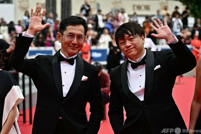 吾朗監督は、オスカー像を米国から大切に持ち帰る際にジブリの代表者はホテルのタオルにくるまなければならなかったというエピソードを披露。名誉パルムドールのトロフィーは箱に入っていて「非常にうれしく思います」とジョークを飛ばした。(c)AFP