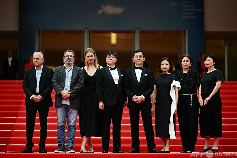 吾朗監督は、オスカー像を米国から大切に持ち帰る際にジブリの代表者はホテルのタオルにくるまなければならなかったというエピソードを披露。名誉パルムドールのトロフィーは箱に入っていて「非常にうれしく思います」とジョークを飛ばした。(c)AFP