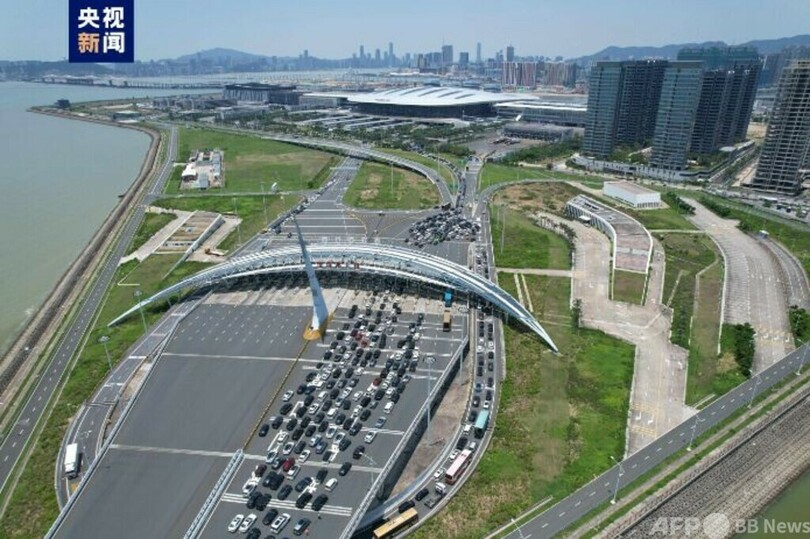 珠海道路検問所では、週末および祝日の1日当たりの客の流れは平日の1.5倍の延べ6万1000人、車の流れは同1.3倍の延べ1万6100台となっています。(c)CGTN Japanese/AFPBB News