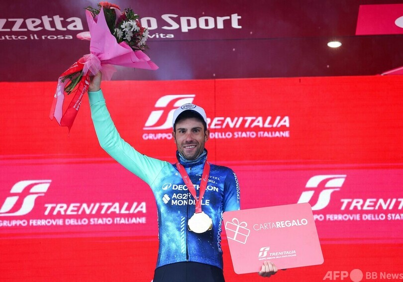 【5月25日 AFP】自転車ロードレース、ジロ・デ・イタリア(Giro d’Italia 2024)は24日、第19ステージ(モルテリアーノからサッパーダ、157キロメートル)が行われ、デカトロン・アージェードゥーゼル・ラモンディアル(Decathlon-AG2R La Mondiale)のアンドレア・ヴェンドラーメ(Andrea Vendrame、イタリア)が独走で区間優勝を果たした。
